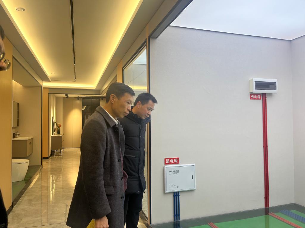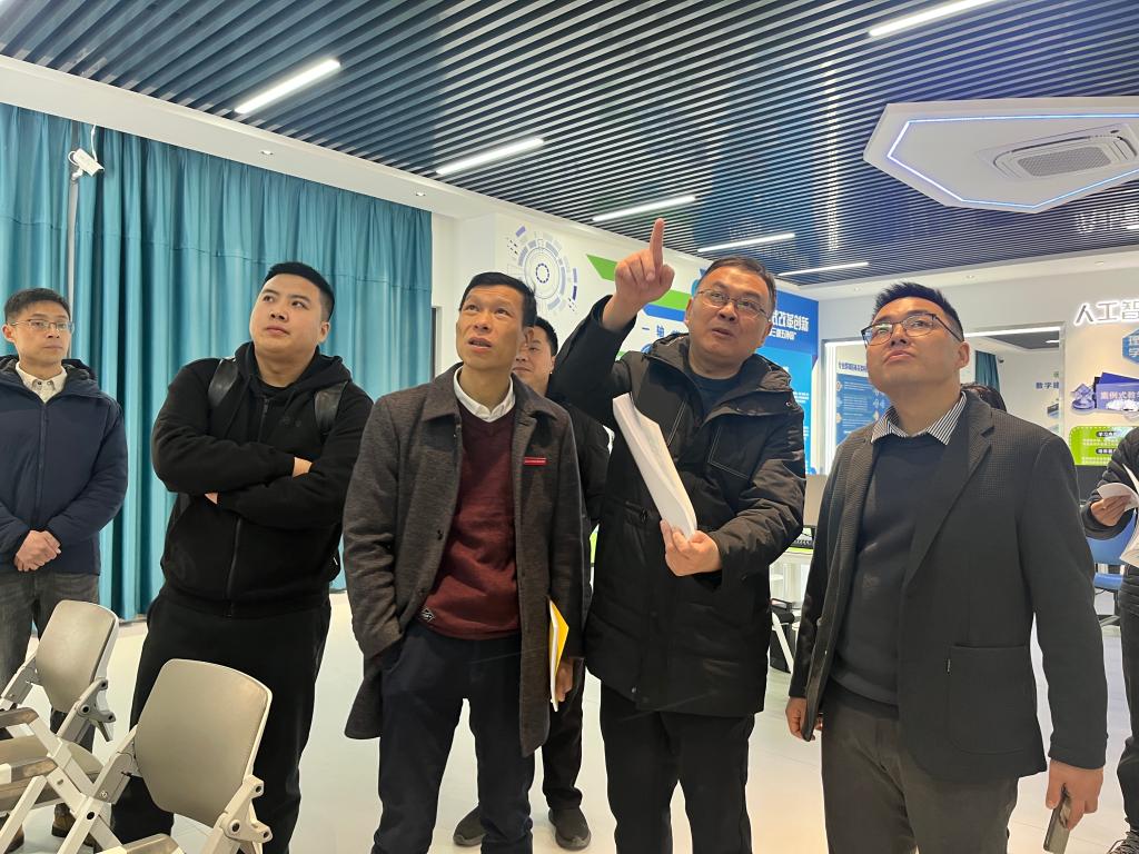 随后,詹其仙书记一行参观了智能建造产教融合实训基地和环境空间展示一体化实训室。在实地了解智能建造技术和建筑室内设计等专业的教学和实践情况后,他对系部在产教融合、校企合作方面的积极探索给予了高度评价。詹其仙书记表示,这些实训基地和实训室的建设不仅提升了学生的实践能力和创新精神,也为系部与企业的深度合作提供了有力支持。