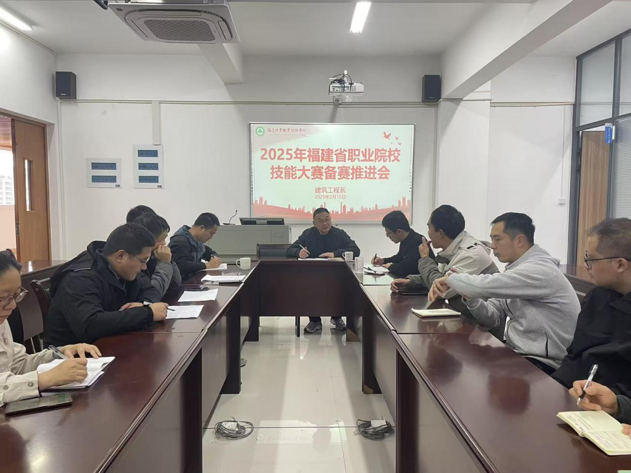 本网讯/2025年2月15日,建筑工程系在系会议室召开了2025年福建省职业院校技能大赛备赛促进会。此次会议旨在总结前期备赛工作,明确后续备赛方向,确保参赛团队能够在即将到来的技能大赛中取得优异成绩。