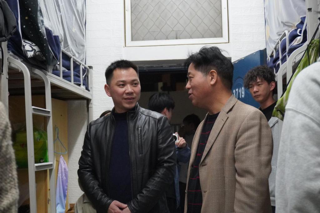 在男生宿舍,严绍裕副书记一行与同学们亲切交谈,细致询问大家的学习进度与日常生活情况,关注同学们的作息安排以及对课程的适应程度。在交流过程中,得知许多同学课余热衷于篮球、跑步等体育运动,严副书记对此深感欣慰,鼓励同学们在忙碌的学业之余,持续保持锻炼,塑造健康的生活方式。同时,他也提醒同学们合理规划时间,强化自主学习能力,携手营造积极向上的宿舍氛围。