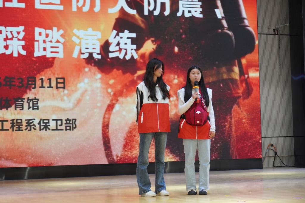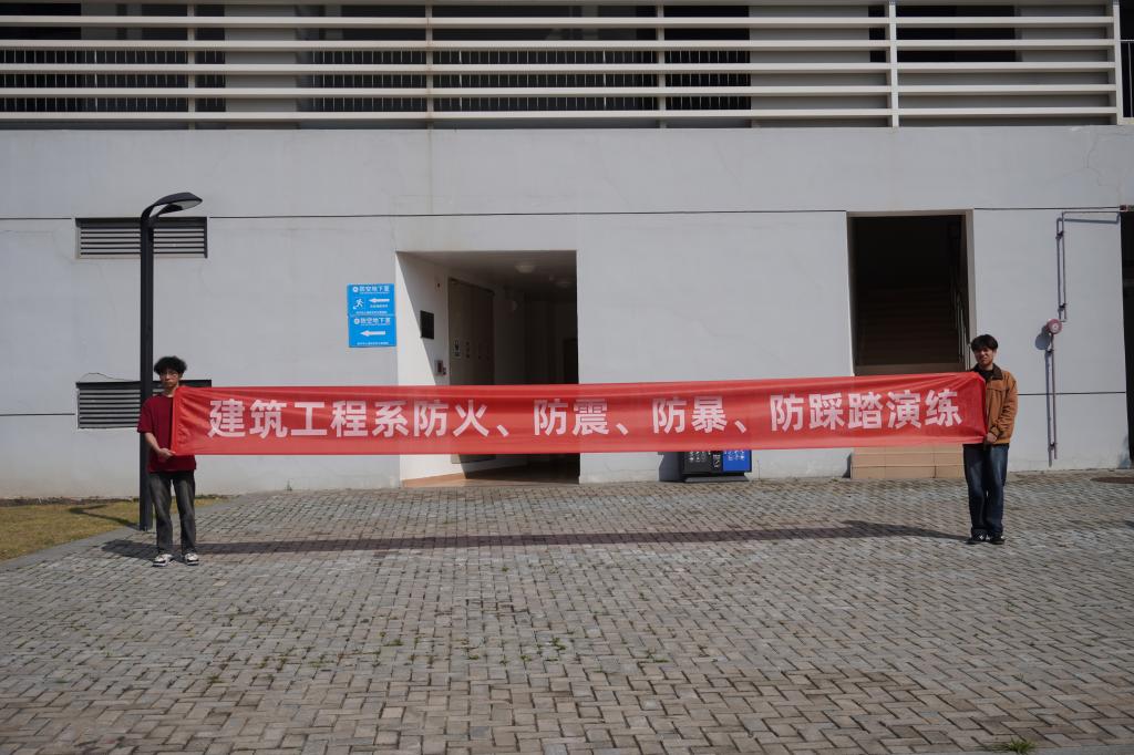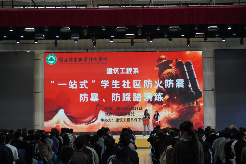 本网讯/校园安全,重中之重。为全力打造平安校园,营造安全有序的校园环境,进一步强化师生的消防安全意识,有效增强应对突发性事件的能力,3月11日,建筑工程系在江南体育馆组织开展“一站式”学生社区防火、防震、防暴、防踩踏安全演练活动。