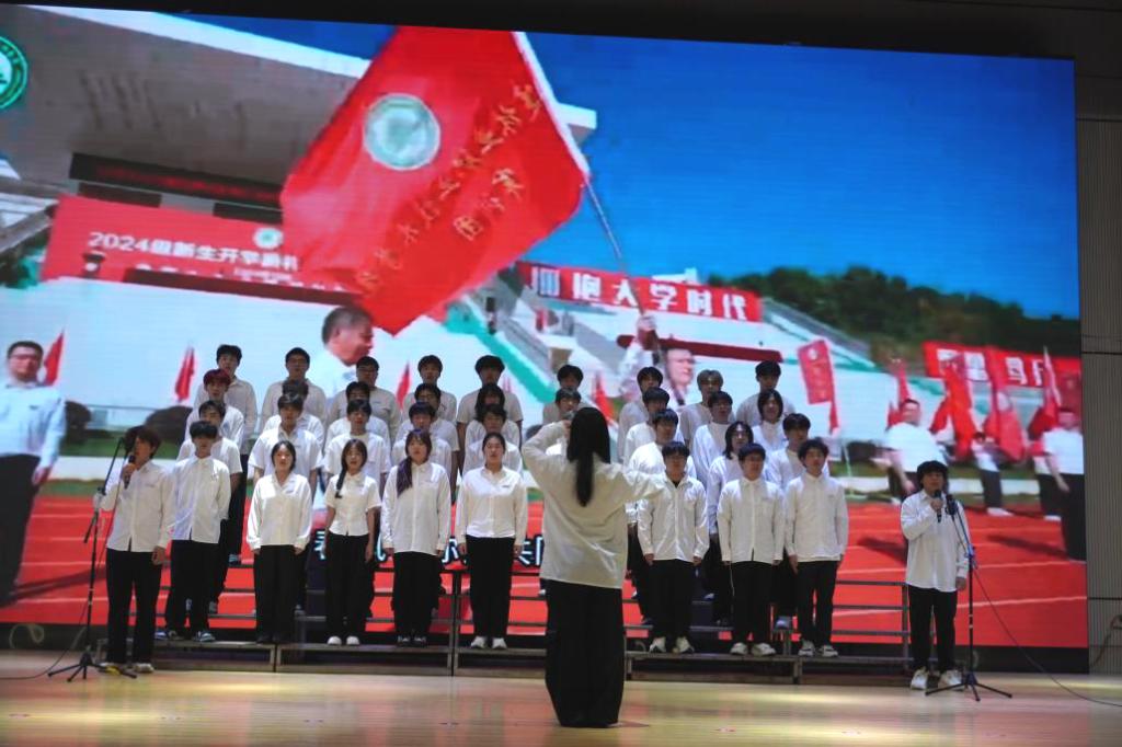 当音符在礼堂中回响,我们触摸到的不仅是旋律的温度,更是一个民族血脉中奔涌的信仰;从历史深处传来的铿锵节拍,此刻正与新世纪的脉搏同频共振——这就是红色基因永不褪色的有力证明!让我们以歌为舟,载着红色记忆扬帆起航;以声为炬,点燃新时代奋斗的豪情!