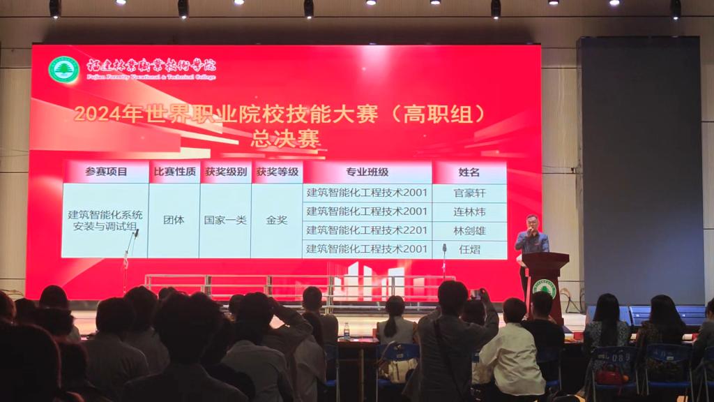 建筑工程系系主任彭忠伟对获奖学生和团队予以表彰。他指出,在2024年各类技能大赛中,建筑工程系学子凭借扎实的专业知识、精湛的实践技能与卓越的团队协作能力,斩获佳绩。个人与团体荣获“红枫”产学研奖学金,总金额达6万多元。尤为突出的是,林剑雄等4位学生组成的团队,在2024年世界职业院校技能大赛(高职组)总决赛中,凭借深厚的专业素养和出色的现场表现,勇夺全国金奖,为学院争得荣誉。