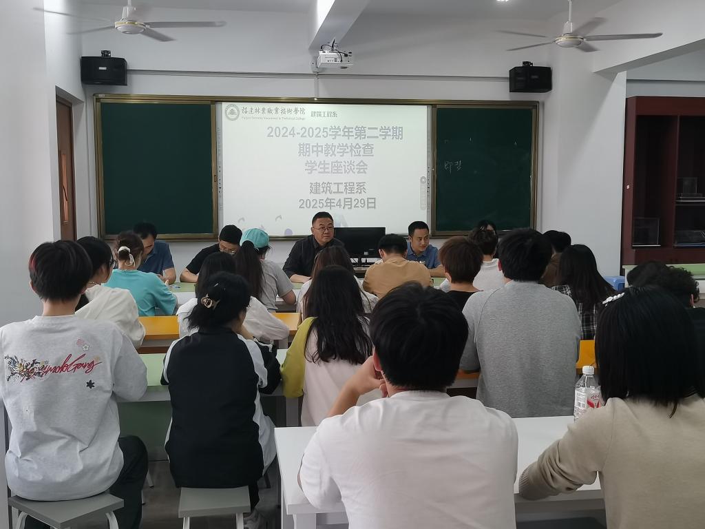 本网讯/为进一步加强学院师德师风建设,规范教师的教学工作,深入了解教学情况,进一步提升教学质量,以及本学期开学以来各项教学工作的运行情况,2025年4月29日,建筑工程系于建工楼实训室505成功召开2024-2025学年第二学期期中教学检查学生座谈会。建筑工程系主任彭忠伟、副主任张李平、系教务科科长廖坤阳、环境工程教研室主任陈燕、建筑工程教研室主任陈龙以及各年级、专业学生代表齐聚一堂,共话教学发展,本次会议由廖坤阳主持。