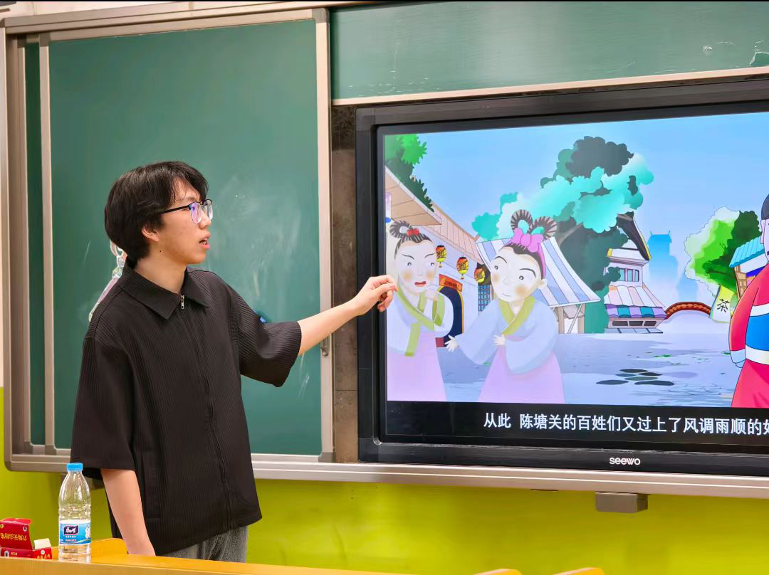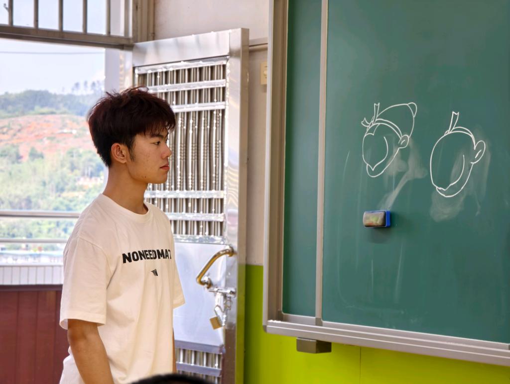 故事课中,支教志愿者精心准备了经典寓言《拔苗助长》,志愿者们丰富的肢体语言和夸张的神情迅速吸引了孩子们的注意力,讲述的过程中支教志愿者密切关注孩子们的反应,鼓励他们随时提问,积极与他们互动,让孩子们沉浸在故事的奇妙世界里。最后的讲解环节,支教志愿者用简单易懂的语言解释寓意:"就像小树苗需要时间慢慢长大,我们学习知识也要一步一个脚印哦!”这堂故事课,不仅为孩子们带来了欢乐,更在他们心中种下了想象的种子。支教志愿者们用爱与耐心,守护着孩子们纯真的心灵,让他们在故事的世界里自由翱翔,快乐成长。