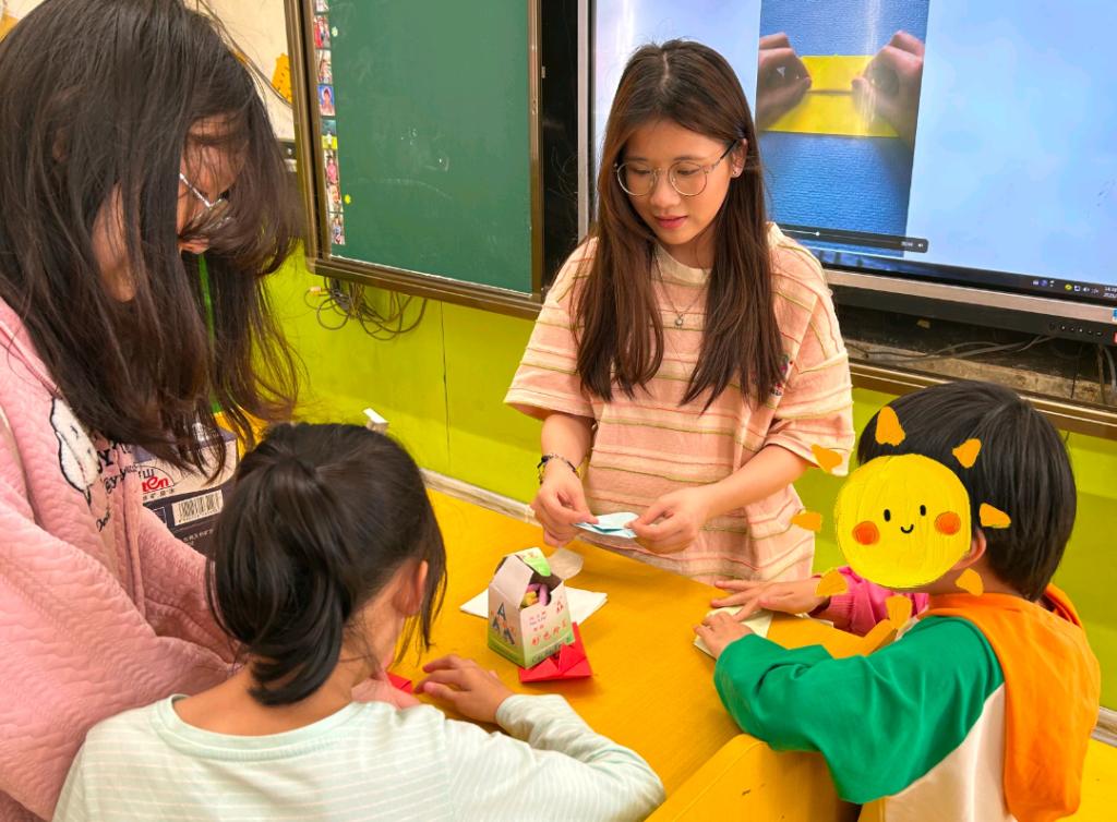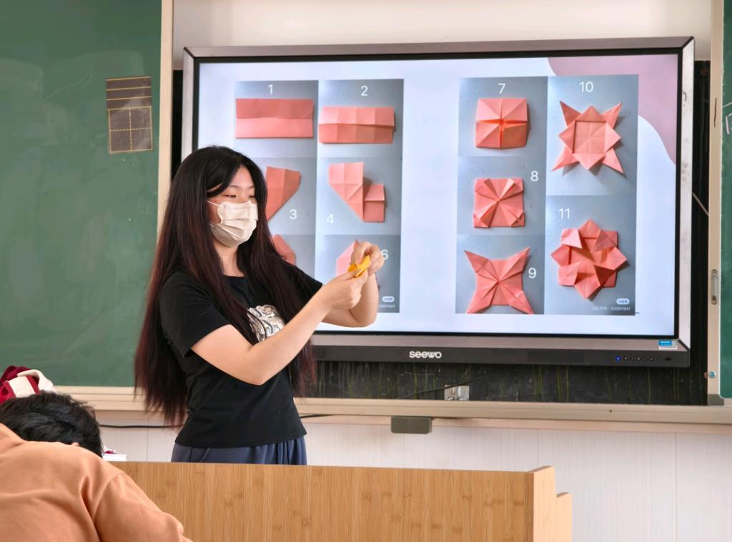 在手工课上,志愿者们进行示范和指导后,孩子们积极动手实践,将简单的材料变成了一件件精美的手工艺品。志愿者们教孩子们制作了简单的折纸陀螺,当彩纸在指尖翻飞,不一会儿就变成了可以旋转的小陀螺时,孩子们的眼睛都亮了起来。这堂手工课不仅锻炼了孩子们的动手能力,还让他们在创作中收获了快乐和自信。
