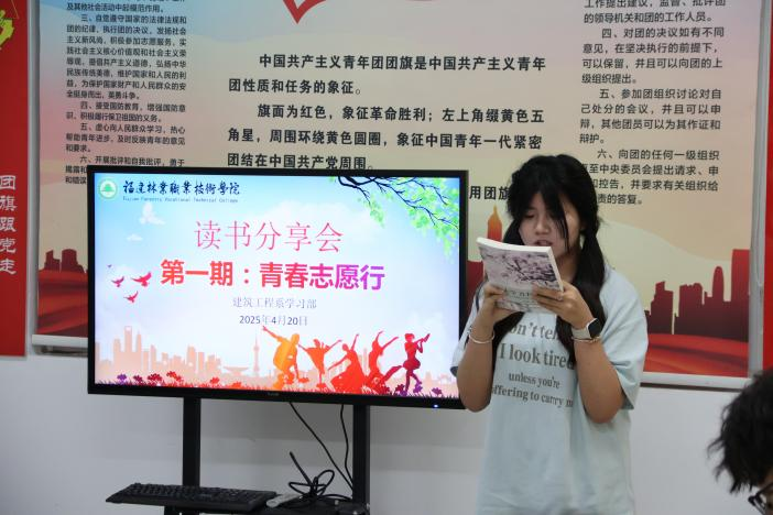 本网讯/在这个春意盎然的季节,建筑工程系"以书为伴,快乐阅读"第一阶段“青春志愿行”读书活动正式收官。第一阶段30天的阅读之旅,同学们积极参与,在书籍的文字中汲取力量,在彼此的分享中传递温暖。