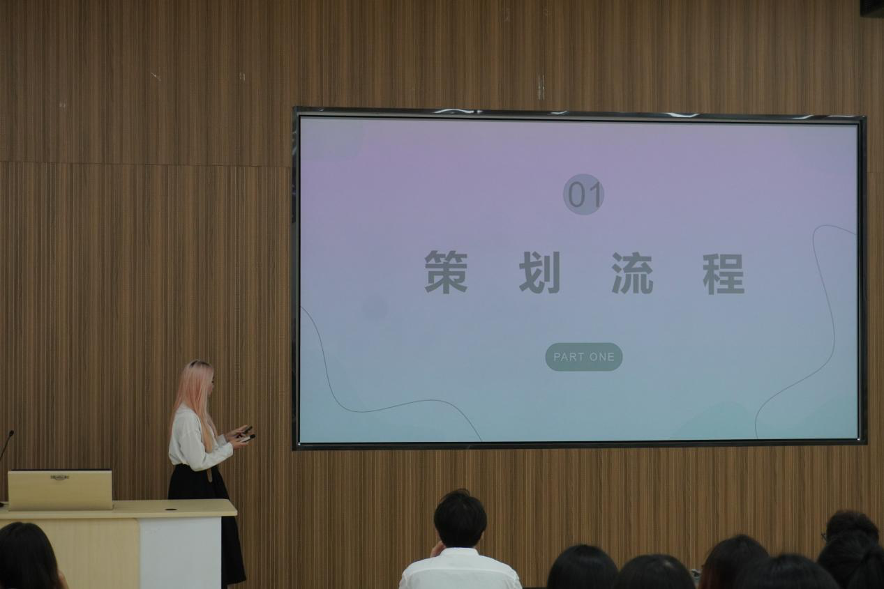 在“活动策划与管理”专题分享中,文艺部部长李秋欣就“策划流程”这一主题进行了深入浅出的讲解。她详细阐述了策划流程中策划方案的撰写,包括如何明确活动目标、选定活动主题、设计活动内容、制定活动预算等。她还强调了活动流程阶段的工作准备及在活动过程中对细节的管理,以确保活动的成功举办。