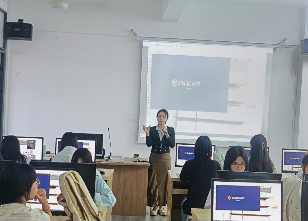 活动伊始,青年教师夏慧瑄率先开启《草图大师》公开课教学。通过提问、示范操作的方式引导学生回顾旧知,运用案例分析、教师示范等方法让学生掌握不同灯光的创建技巧。在讲解灯光参数设置时,强调认真严谨对待每个细节,培养学生良好的学习习惯。学生实践操作环节后还组织学生开展自评互评,充分调动学生积极性。夏慧瑄老师以严谨治学为底色,化抽象理论为易懂实操,课堂趣味盎然,尽显张弛有度的教学风采。
