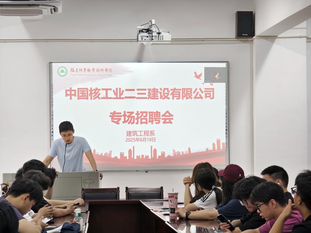 企业负责人高度肯定了学院的人才培养质量,并表示,企业愿意为学院提供更多的实习岗位和技术支持机会,助力学生实现从校园到职场的无缝衔接。交流结束之后,中国核工业二三建设有限公司还在建筑工程系会议室召开了2025届毕业生专场招聘会,此次招聘累计为毕业生提供近30个就业岗位。