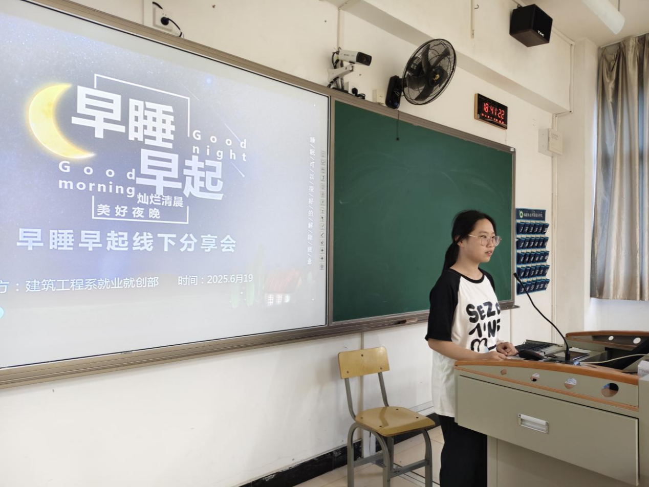 6月19日,建筑工程系举办了“早睡早起”打卡活动线下分享会,在暖意融融的分享角落,同学们围坐成圈,话语如涓涓细流般自然流淌。那些与被窝缠绵的艰难拉锯,那些被晨曦唤醒后通体舒畅的奇妙感受,此刻都化作一个个带着温度的故事,在空气中轻轻碰撞。有同学娓娓道来,讲述晨光中专注阅读如何让知识的溪流悄然汇成心湖,带来前所未有的宁静与洞见;有同学兴奋地分享,坚持晨跑如何像一把钥匙,不仅打开了身体的活力之源,更让久违的精气神重新焕发光彩。每一个坦诚的分享,每一次会心的点头,都让彼此深刻感受到,正是这一点一滴看似微小的坚持,汇聚成了推动每个人前进的、温暖而有力的集体洪流。