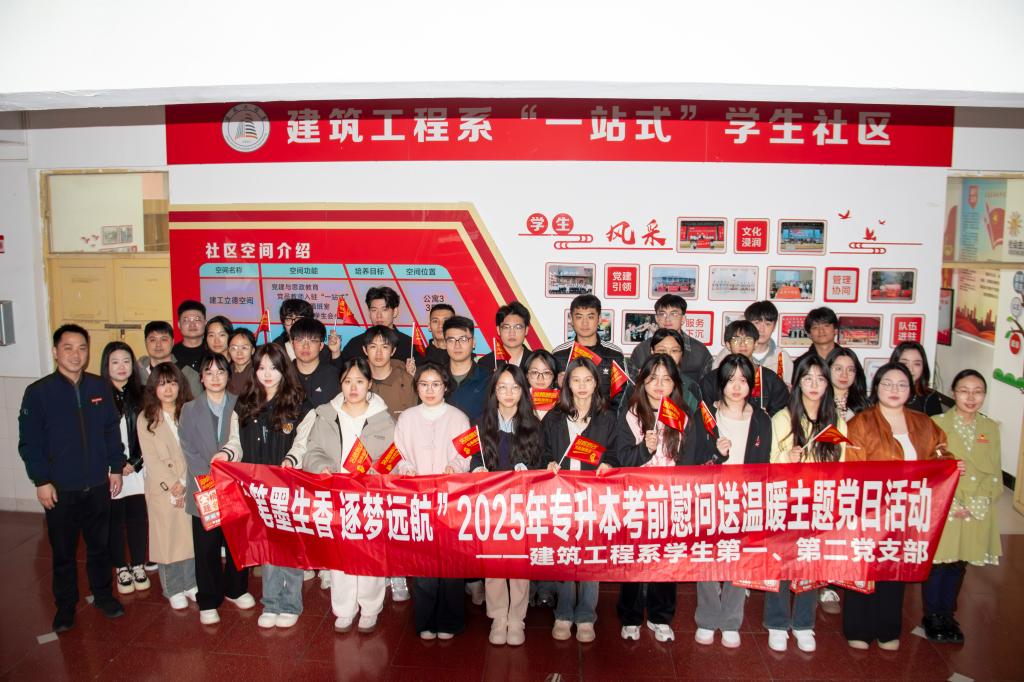 本网讯/为贯彻落实立德树人根本任务,坚持不懈用习近平新时代中国特色社会主义思想铸魂育人,积极探索党建引领“一站式”学生社区育人工作新模式,2025年3月28日,建筑工程系学生第一、第二党支部在“一站式”学生社区开展“笔墨生香 逐梦远航”2025年专升本考前慰问送温暖主题党日活动。学院党委副书记严绍裕,学生工作部部长陈友益,系党总支书记魏长专,专职组织员叶新颖,学生科科长兼团总支书记刘克芹,学生党支部书记陈慧婷、张道良,副书记林燕琼和支部全体教师党员及考生党员代表参加活动。
