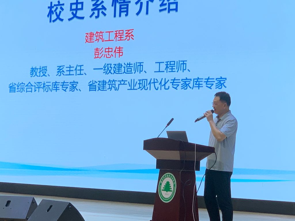 讲座伊始,彭忠伟主任以热情洋溢的致辞欢迎新生加入,并围绕校史与系情展开讲解。他指出,学校自1953年创办以来,始终以“明思、笃行、业精、德厚”为校训,以“敬业、吃苦,务实、进取”的天麟精神为引领,深耕高素质技术技能人才培养领域;同时,他细致梳理了建筑工程系的发展脉络与各专业特色,勉励新生珍惜大学时光,以勤勉态度深耕专业,努力成长为兼具实践能力、创新精神与社会责任感的优秀人才。