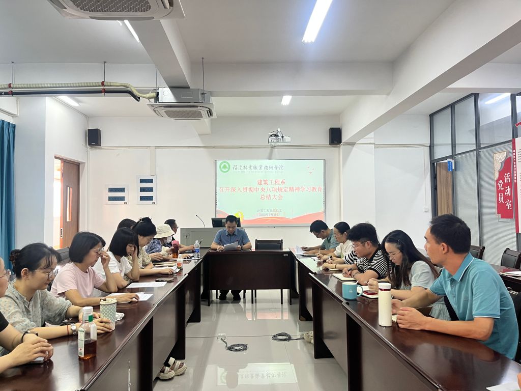 本网讯/2025年9月16日,建筑工程系在建工楼502会议室召开深入贯彻中央八项规定精神学习教育总结大会。全系教师党员出席会议,会议由建筑工程系党总支书记魏长专同志主持。