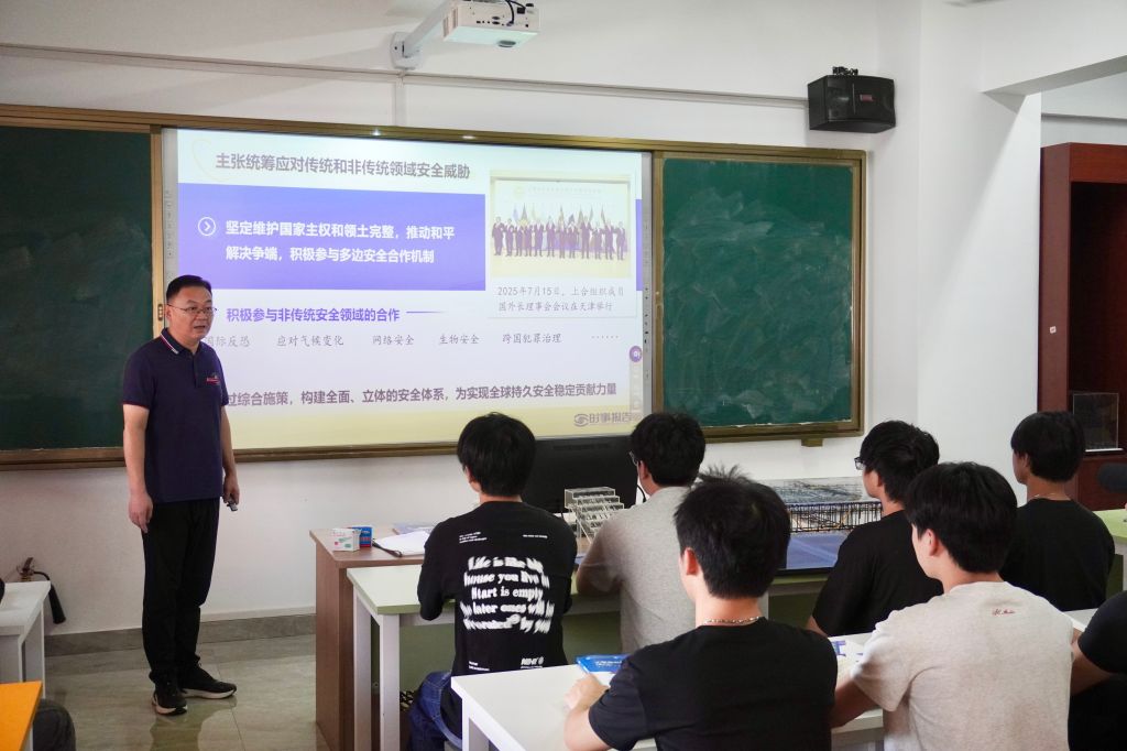 本网讯/为贯彻习近平总书记关于“全球治理观”的重要指示精神,积极引导学生关注国际形势、增强全球视野,2025年9月30日,建筑工程系主任彭忠伟教授为建筑智能化工程技术专业的学生们讲授了一场主题为“践行多边主义,完善全球治理”的形势与政策课,为学生们打开了一扇洞察国际风云的窗口。