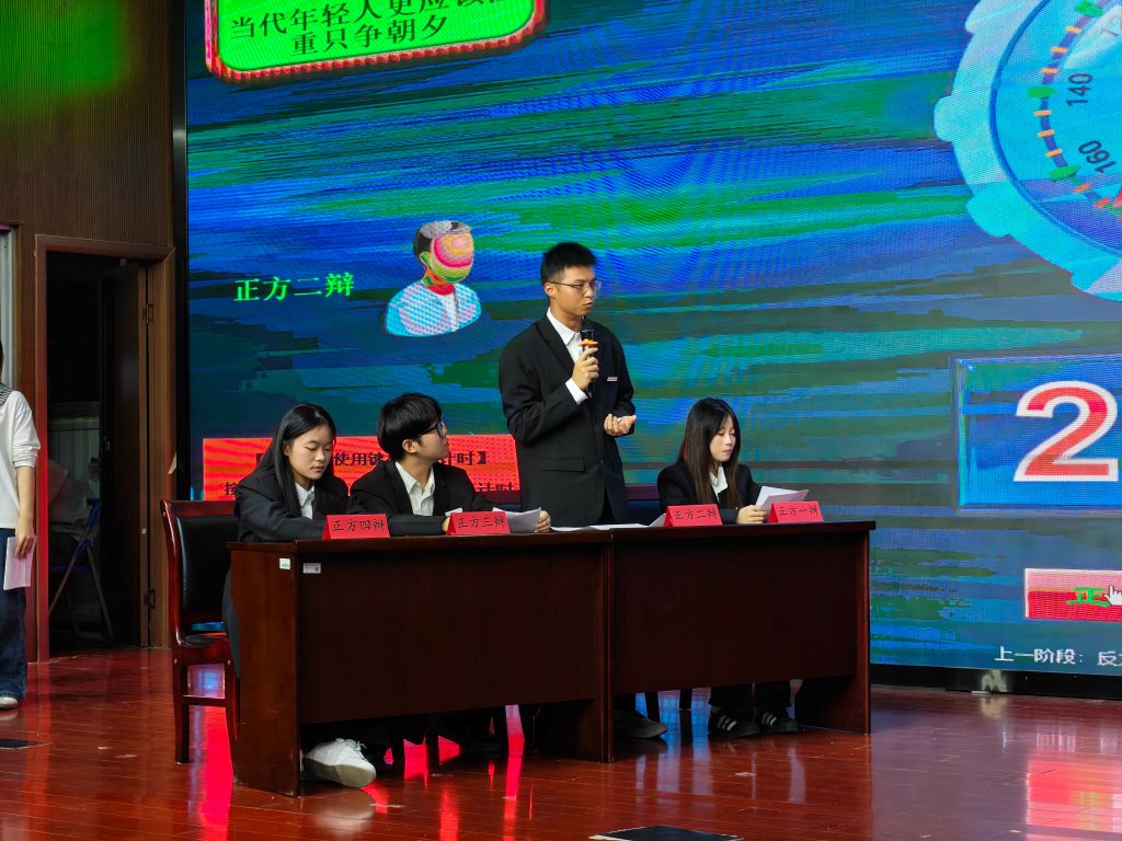 各班级代表队以饱满的热情与严谨的逻辑锋芒立论,在辩论的舞台上展现出卓越的思辨能力。他们机敏应对、精准质询,通过唇枪舌剑的精彩交锋,不仅点燃了全场的思辨火种,更激发了观众对问题本质的深入思考。经过多轮紧张激烈的角逐,现场气氛高潮迭起,最终6支实力强劲的队伍凭借出色的表现杀出重围,成功晋级决赛,展现了当代学子优秀的综合素质与竞技风采。