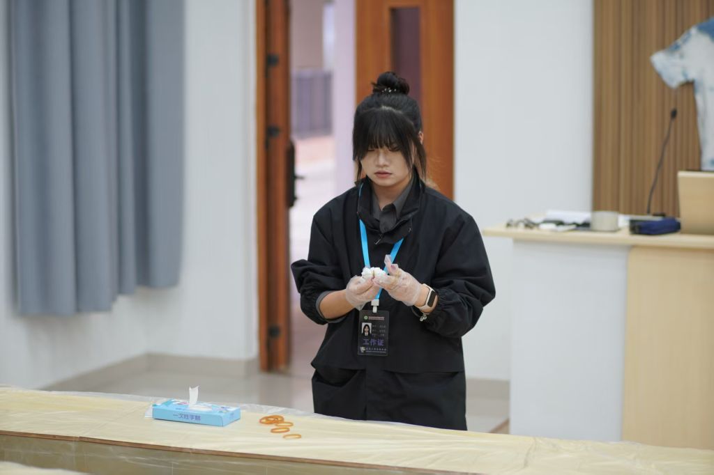本网讯/扎染技艺是国家级非物质文化遗产,起源秦汉、盛于唐宋,是底蕴深厚的中国传统手工染色技艺。为探寻非遗之美、助力文化传承,推动大学生深入了解非遗文化、感悟扎染独特魅力,汇聚更多青春力量赋能非遗传承,11月18日,建筑工程系联合交通工程系开展“缚扎显本色,浸染淬初心”非遗扎染传承活动,让学生们充分感受非遗艺术中蕴含的东方美学与传统智慧。