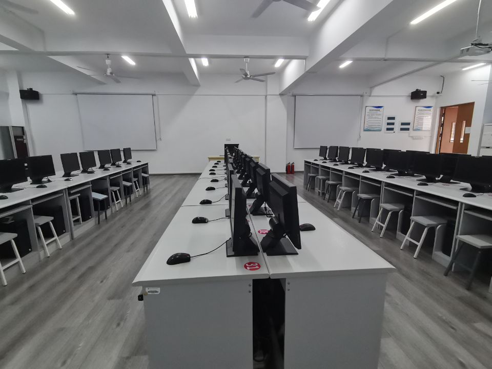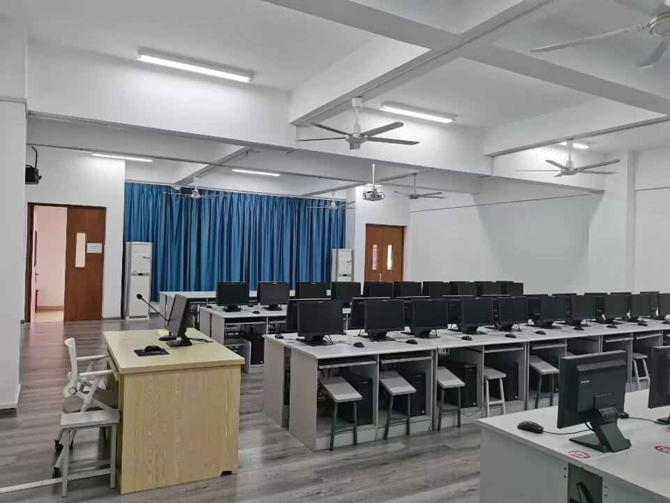 建筑工程软件实训室硬件条件包括:配备100台高配置电脑,保证了计算机软件运行的流畅度和良好的学习体验,每个机位配备多功能桌椅。每间实训室均安装高清投影、多媒体功放和立式空调等设备,营造了良好的学习环境。