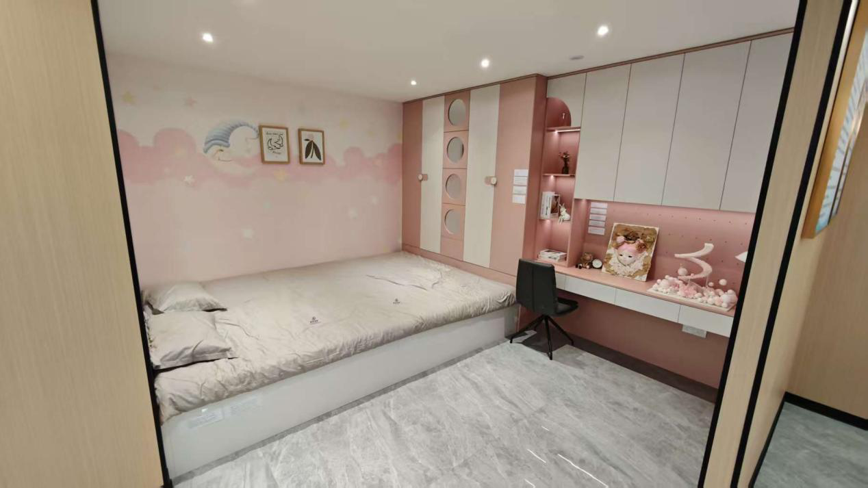 作为产教融合的实践基地,实训室长期与企业合作,学生在此不仅能夯实空间规划、施工工艺等专业技能,更能培养客户沟通、项目管理等职业素养。该实训室展示的是现代化风格家居空间,可同时容纳百名学生。其中包括多媒体教室、客厅、餐厅、厨房、儿童房、主卧、书房、电竞房与衣帽间等空间。