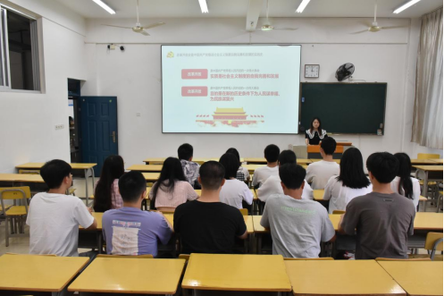本网讯 为增强党员守初心、担使命的思想自觉和行动自觉,增强实现中华民族伟大复兴中国梦的信心,2022年2月28日,建筑工程系学生第一党支部书记林燕琼组织支部学生党员及学生入党积极分子在实训四305开展“四史”学习教育专题党课。