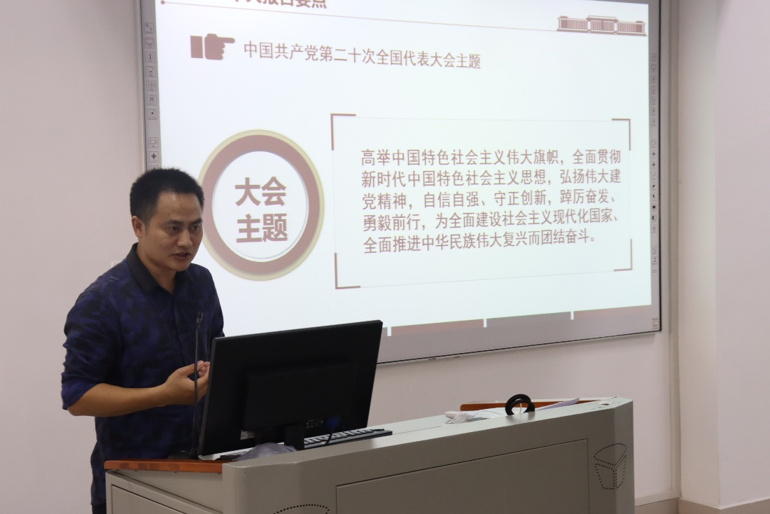 为进一步学习宣传党的二十大精神,2022年11月8日下午,建筑工程系教工党支部书记廖坤阳在建工楼五楼会议室为支部全体教师党员作党的二十大精神宣讲。