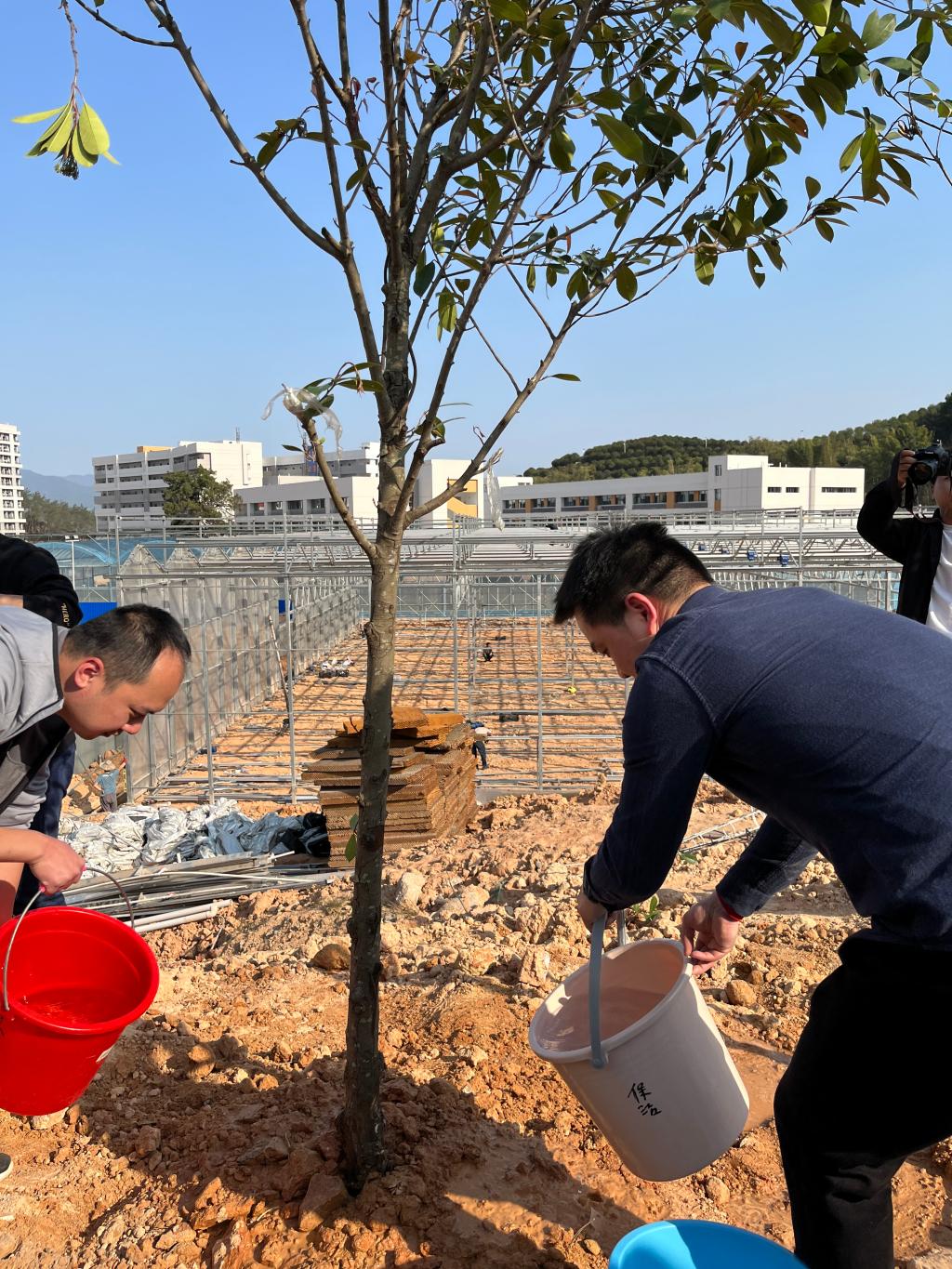 建筑工程系全体师生党员在园林综合实训基地开展此次植树节种植活动,共计种植40棵红叶石楠。活动现场,大家分工协作,党员们撸起袖子挥锹铲土、种植树苗再填坑、踩土浇水夯实,干劲十足。虽然裤腿上沾满了泥土、脸颊流下汗珠,但每个人都流露出愉悦的表情,纷纷表示,通过植树节活动增强了自身保护环境、保护大自然的意识,今后将以实际行动积极践行“绿水青山就是金山银山”发展理念,力求为生态环境改善贡献自己的一份力量,为美丽家园建设承担一份责任。
