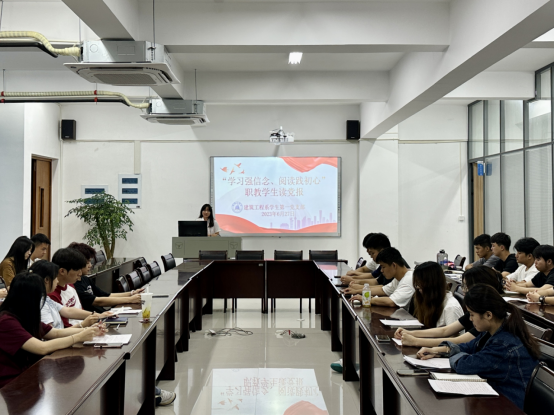 建筑工程系学生第一党支部书记陈慧婷带大家共同领读了人民日报相关文章,结合自身学习和工作经历,畅谈了阅读收获和启示。