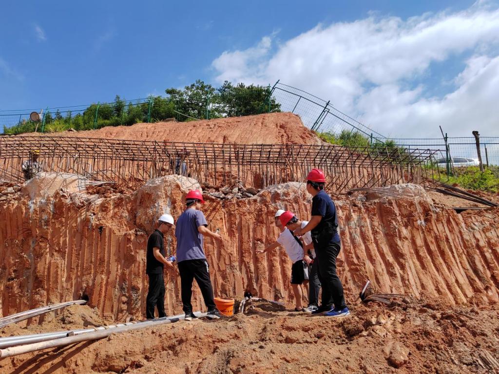 党员教师来到项目部会议室,由项目经理部崔裕平经理向大家介绍项目的总体施工进展,并就工程施工的特点及当前存在的一些技术重难点进行了详细的讲解。随后双方就工程施工图纸进行深入的交流和探讨。会后,在崔经理的带领下,党员教师们冒着烈日来到施工现场,实地了解预制管桩施工及锚杆钻孔灌注桩等施工工艺。在现场,党员教师们与现场施工技术人员相互交流质量、安全管理心得。