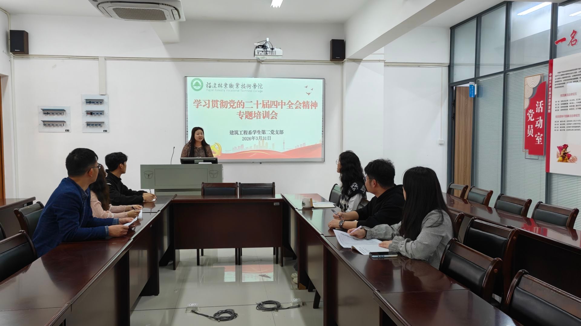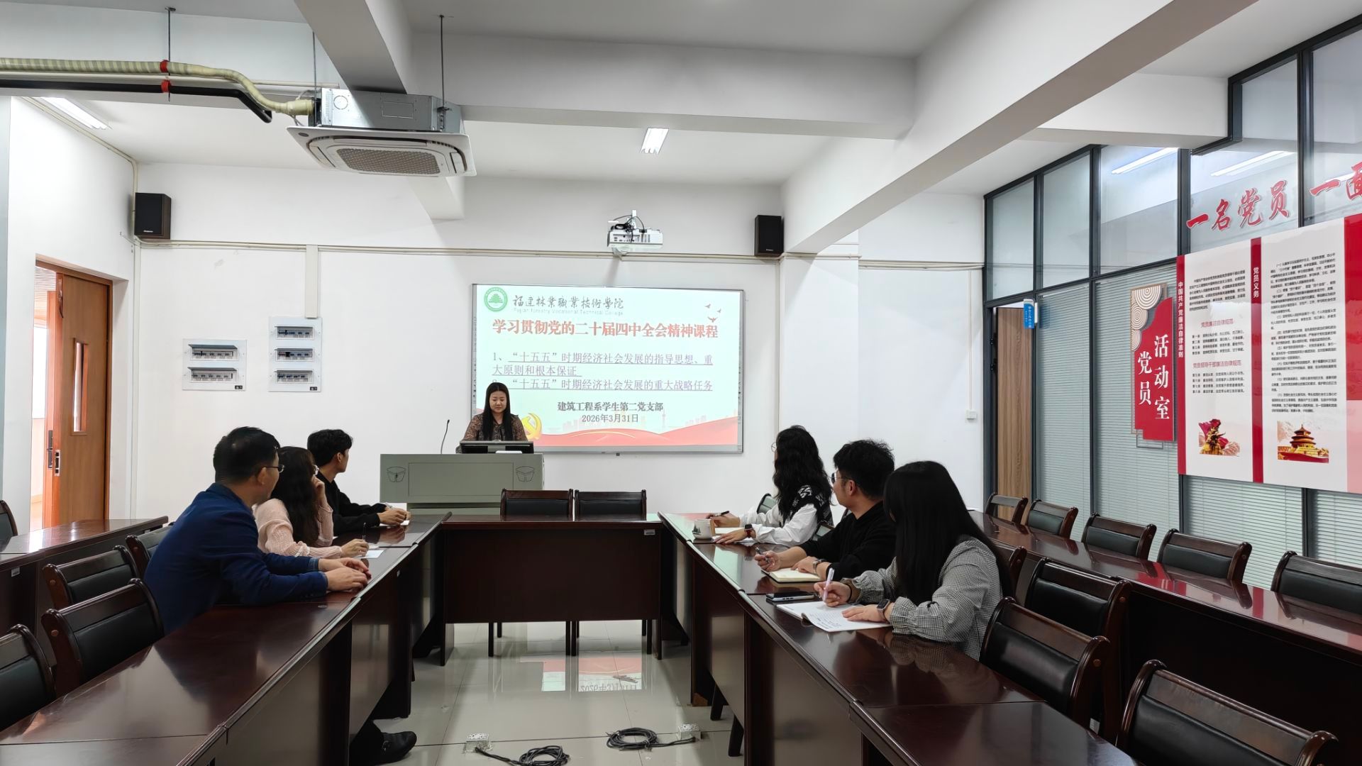 本网讯/2026年3月31日,建筑工程系学生第二党支部在建工楼502会议室组织开展了党的二十届四中全会精神专题学习培训,集中观看“‘十五五’时期经济社会发展的指导思想、重大原则和根本保证”“‘十五五’时期经济社会发展的重大战略任务”两个视频课程。本次培训由建筑工程系学生第二党支部书记李媛主持,全体师生党员参加。