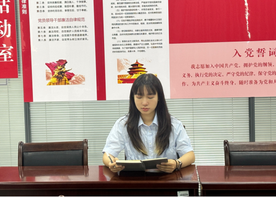 学生第一党支部书记陈慧婷带领全体党员重温入党誓词。党员同志面向党旗庄严宣誓,在铮铮誓言中重温入党初心,坚定理想信念,牢记职责使命。希望毕业生党员牢记入党誓词和入党时间,时刻以入党誓词的要求严格要求自己,提升自己,发挥自己,不忘初心,牢记使命,为党的事业奋斗终身。