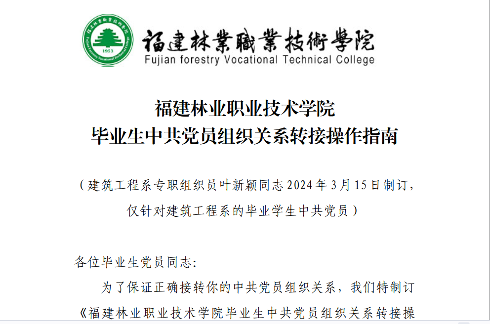 他表示,长期以来,我们系在此项工作取得成绩还是不错的,为此,我还专门出台《福建林业职业技术学院毕业生中共党员组织关系转接操作指南(建筑工程系)》。值此2024年毕业生党员即将返校之际,开展有针对性的培训,既可以提高业务能力,还可以有效助力学生党员党组织关系,是一件非常有实用意义的技术培训。