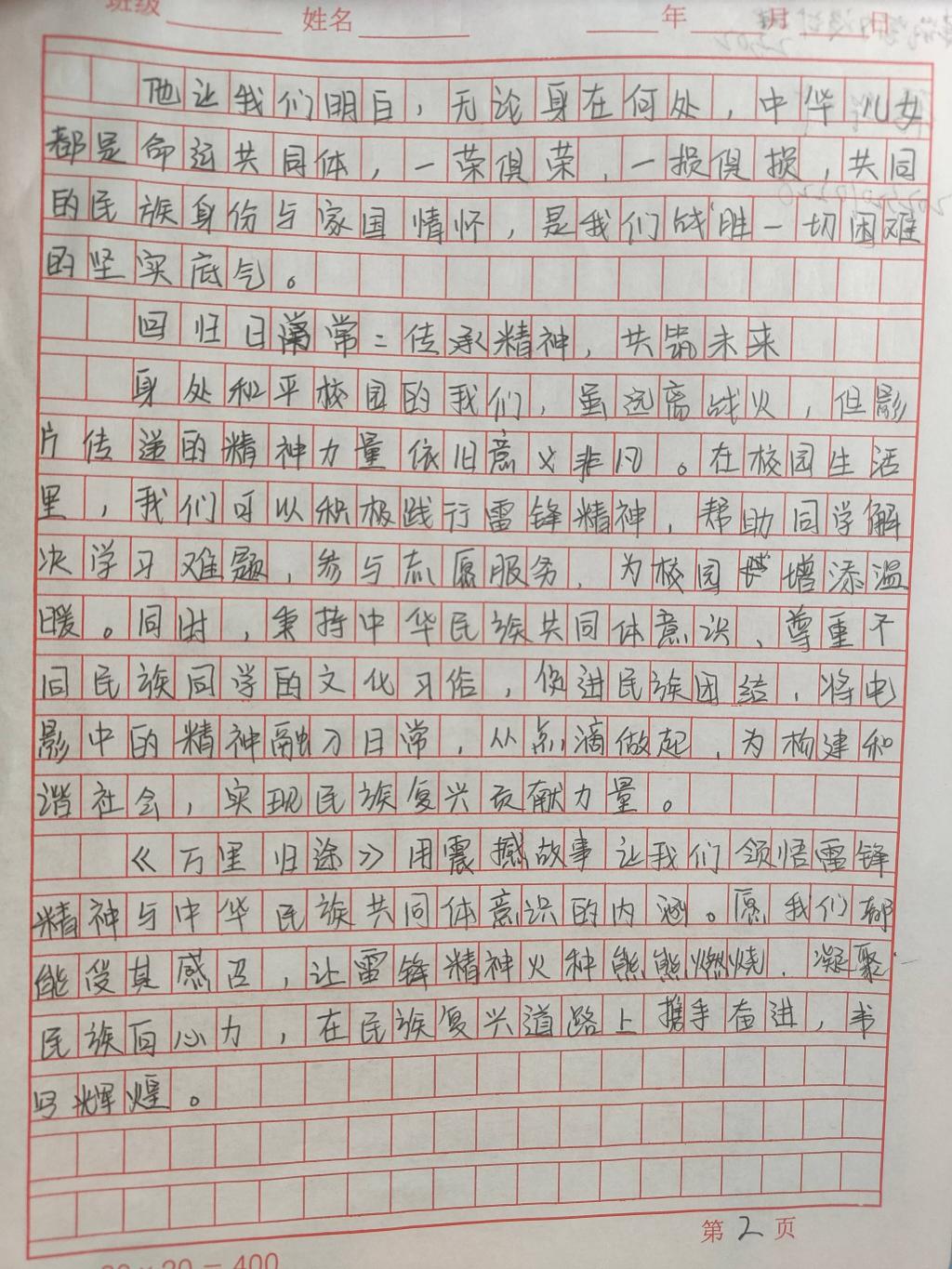 3月31日,建筑工程系举办了“雷锋精神的火种·照亮民族同心圆”观影与征文活动。同学们观看了电影《万里归途》,影片中外交官们无畏生死、一心护民的坚定身影,生动诠释了雷锋精神中全心全意为人民服务的崇高内涵。观影结束后,同学们积极参与征文活动,用文字表达对雷锋精神的理解与感悟。此次活动为同学们搭建了深入感悟雷锋精神的桥梁,让雷锋精神的火种在心间燃得更旺。