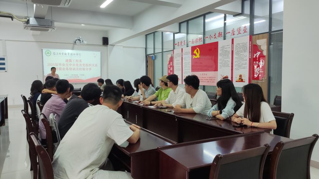 本网讯/为进一步深入推进党建领航工程,强化党建工作基础,切实增强党务干部抓党建工作能力,加强毕业生党员党组织关系规范化管理,确保2025届毕业生党员在升学、就业、返乡等过程中能够顺利转接党组织关系,值此建筑工程系2025年党务干部培训之际,2025年5月14日上午,建筑工程系专职组织员叶新颖在建工楼5楼会议室开设“毕业生中共党员党组织关系转接业务培训及经验分享”党建工作业务专题培训,学生第一党支部书记陈慧婷,第二党支部书记张道良、副书记林燕琼,学生第一党支部书记后备人才干部陈珮琪及全系毕业生党员等43位同志出席培训。