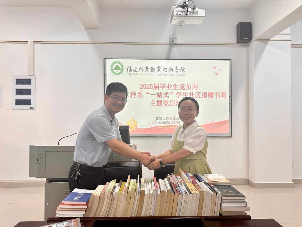 值此学院高质量发展之际,建筑工程系“一站式”学生社区建设也在如火如荼进行,为提高建筑工程系“一站式”学生社区图书藏有量,建筑工程系党总支组织开展毕业生党员在校期间最后一次主题党日活动,鼓励和动员毕业生党员向建筑工程系“一站式”学生社区无偿捐赠书籍,留下一点回忆,给大学生活画上一个有纪念意义的圆满句号。活动后,捐赠书籍均已由专职组织员叶新颖和学生科兼团总支书记刘克芹等党组织代表亲自移交至建筑工程系“一站式”学生社区。