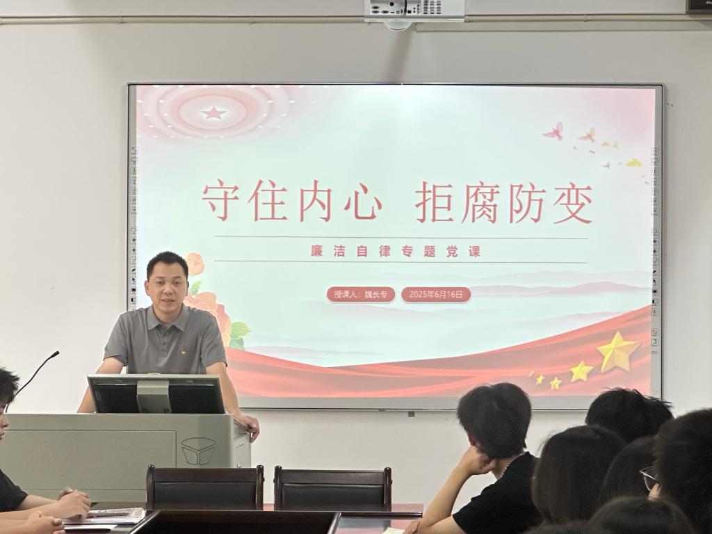 建筑工程系党总支书记魏长专以“守住内心 拒腐防变”主题为全系2025届毕业生党员讲授一堂廉洁自律专题党课,号召毕业生党员坚守理想信念,慎独慎微,持之以恒,廉洁自律,守住内心,拒腐防变。寄语与会党员时刻牢记共产党员身份,弘扬“敬业、吃苦、务实、进取”的天麟精神,坚定为人民服务的理想信念和宗旨意识,筑牢党员的初心和使命,胸怀天下,志存高远,心存敬畏,在各自工作岗位上,充分发挥一名党员的先锋模范作用,凝聚矢志拼搏的奋斗力量,把自己人生理想融入党和人民事业之中,把为人民幸福而奋斗作为自己最大的幸福,砥砺前行,开创未来,努力在奋进青春中书写自己更加辉煌的篇章和更加灿烂的画卷!