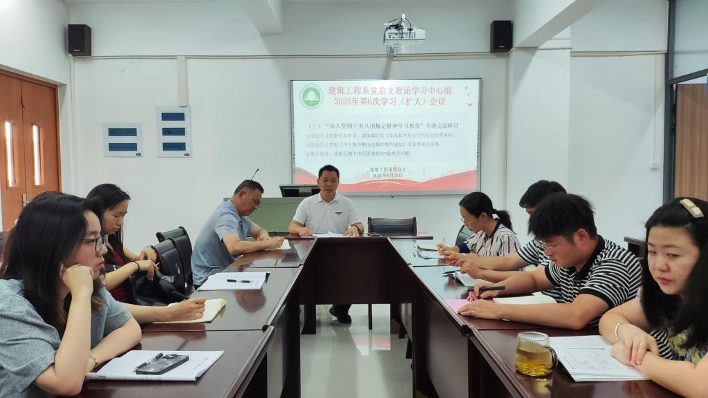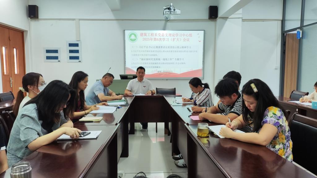 本网讯/2025年6月19日下午,建筑工程系党总支组织召开系党总支理论学习中心组2025年第6次学习扩大会议。建筑工程系党总支书记魏长专、系主任彭忠伟及全系教师党员出席中心组学习扩大会议,会议由系党总支书记魏长专主持。