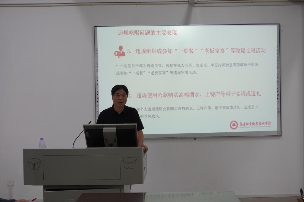 本网讯/为扎实推进深入贯彻中央八项规定精神学习教育走深走实,2025年6月26日下午,学院党委副书记严绍裕同志受邀在建工楼502会议室开设“筑牢抵制违规吃喝防线,推动深入贯彻中央八项规定精神走深走实”专题讲座,建筑工程系师生党员和马克思主义学院教师党员到场聆听。