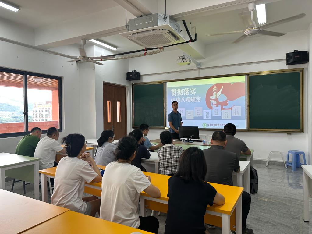 党课上,陈龙同志从中央八项规定出台的历史背景与重大意义讲起,以详实的数据和文献资料,展现中央八项规定在推动全面从严治党进程中的关键作用。结合教育工作实际,陈龙同志着重解读了中央八项规定在改进工作作风、密切联系群众方面的重要作用,深入剖析了教学管理中可能出现的形式主义、官僚主义苗头性问题。同时,通过列举教育系统内外违反中央八项规定的典型案例,从思想根源、制度执行等角度分析其带来的严重危害,强调全体党员教师要从思想上筑牢防线,将中央八项规定内化为行动自觉,自觉抵制形式主义、官僚主义等不良风气。