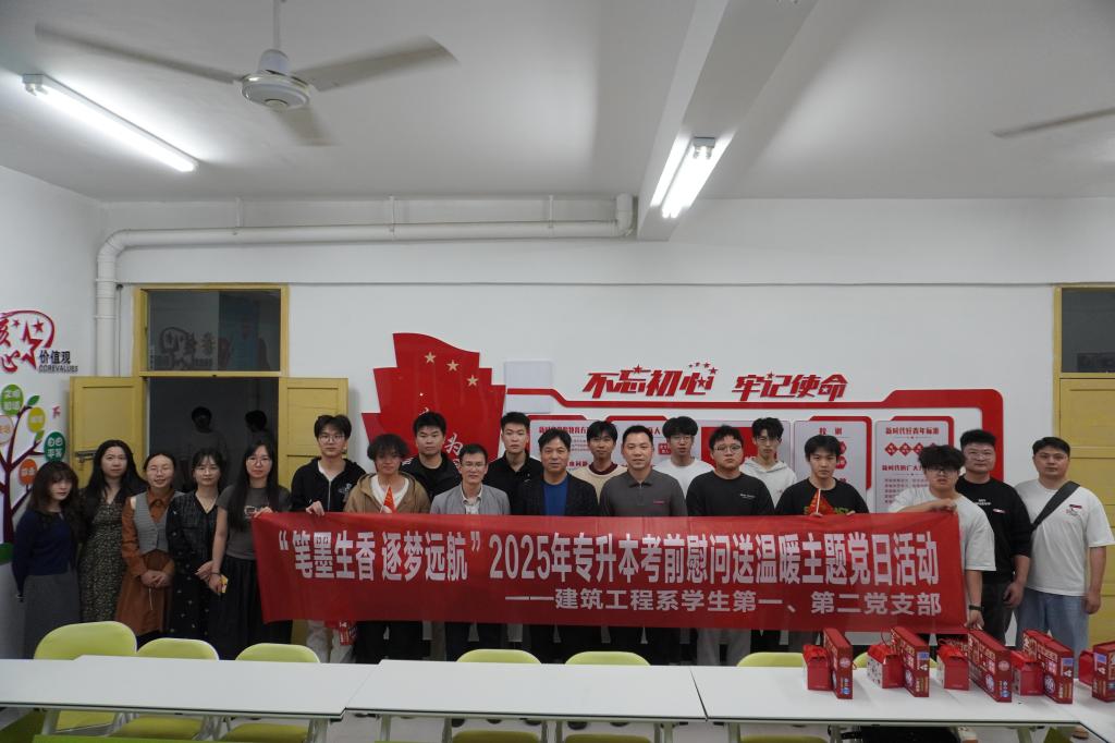 本网讯/为贯彻落实立德树人根本任务,坚持不懈用习近平新时代中国特色社会主义思想铸魂育人,积极探索党建引领“一站式”学生社区育人工作新模式,2025年3月28日,建筑工程系学生第一、第二党支部在“一站式”学生社区开展“笔墨生香 逐梦远航”2025年专升本考前慰问送温暖主题党日活动。学院党委副书记严绍裕,学生工作部部长陈友益,系党总支书记魏长专,专职组织员叶新颖,学生科科长兼团总支书记刘克芹,学生党支部书记陈慧婷、张道良,副书记林燕琼和支部全体教师党员及考生党员代表参加活动。