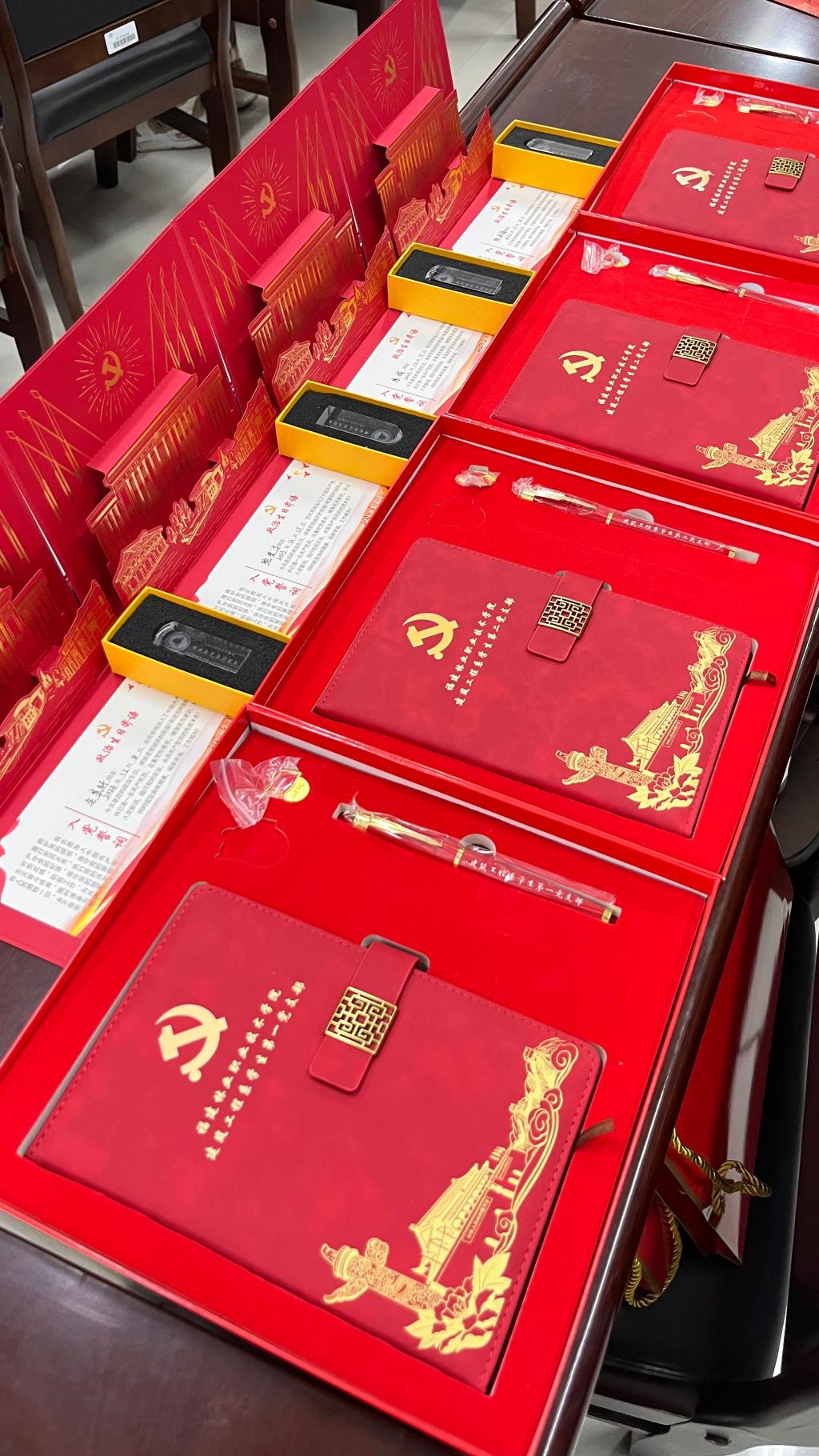 为了让毕业生党员在离开母校之前,感受到党组织的关怀和期望,持续深入推进学生党支部建设,激发学生的党性认识,增强学生党员的责任感、归属感、荣誉感,党组织精心制作了党员信仰纪念品,信仰纪念品包含:“初心”印章、党徽、笔记本和水笔。“初心”印章象征学生党员要时刻牢记自己的党员身份,不忘初心、牢记使命,为实现中华民族伟大复兴的中国梦贡献自己的力量;笔记本和水笔寓意希望学生党员用一笔一墨,执“笔”绘“卷”,书写未来人生路上的华丽篇章,在新的党组织中继续为党旗增辉,为母校添彩!