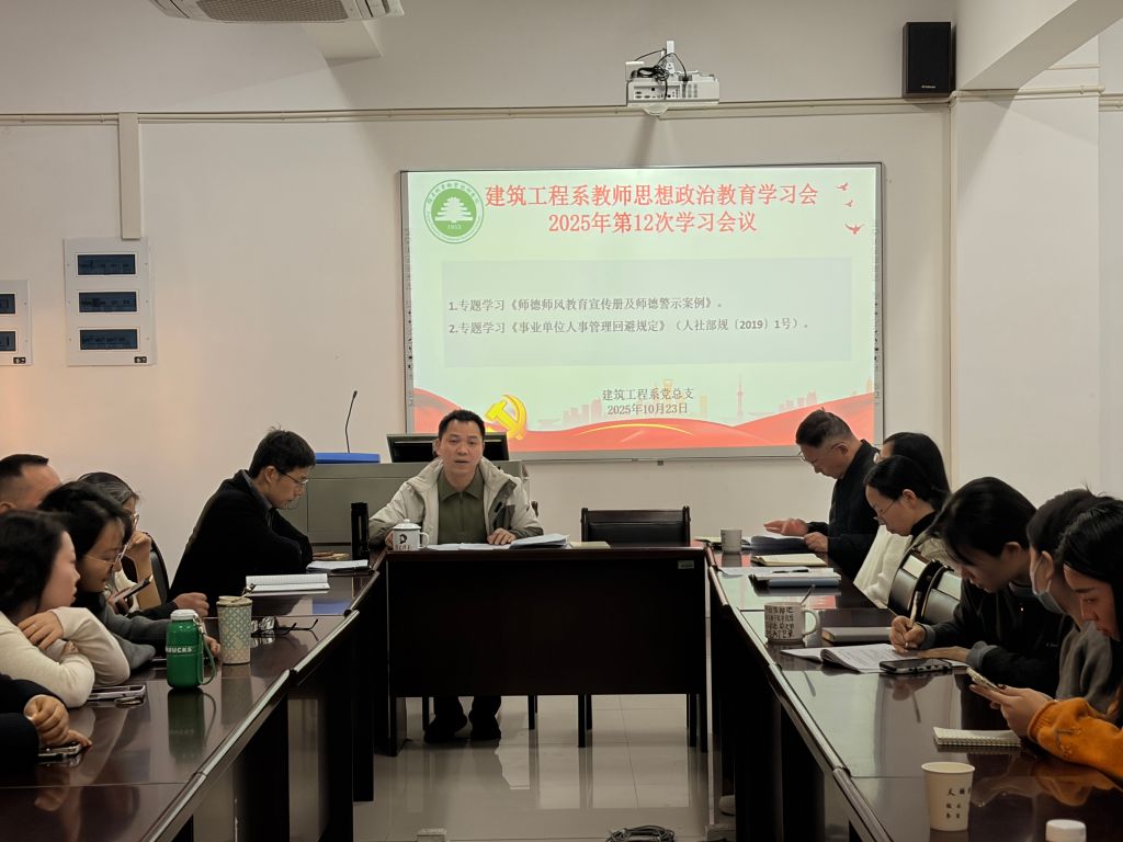 本网讯/为进一步巩固深入贯彻中央八项规定精神学习教育成效,持续推进建筑工程系党风廉政建设,落实常态化开展师德师风警示教育要求,2025年10月23日下午,建筑工程系在建工楼502会议室组织召开师德师风警示教育会,会议由建筑工程系党总支书记魏长专主持,建筑工程系全体教职工出席会议。
