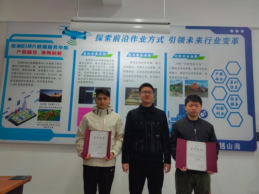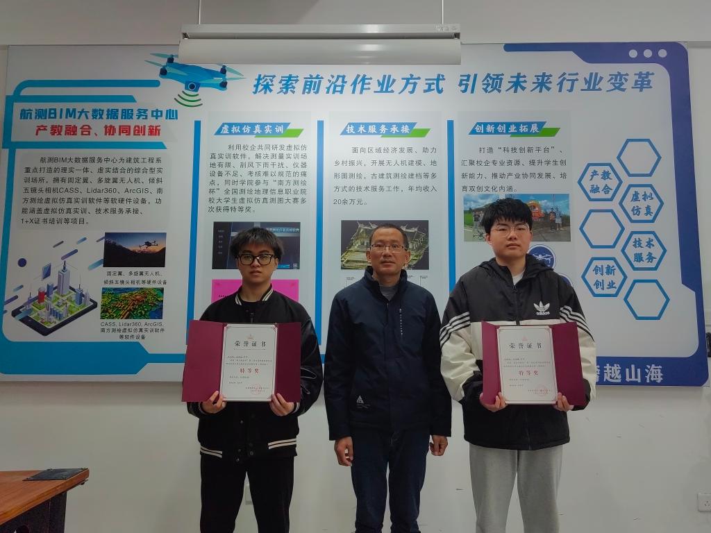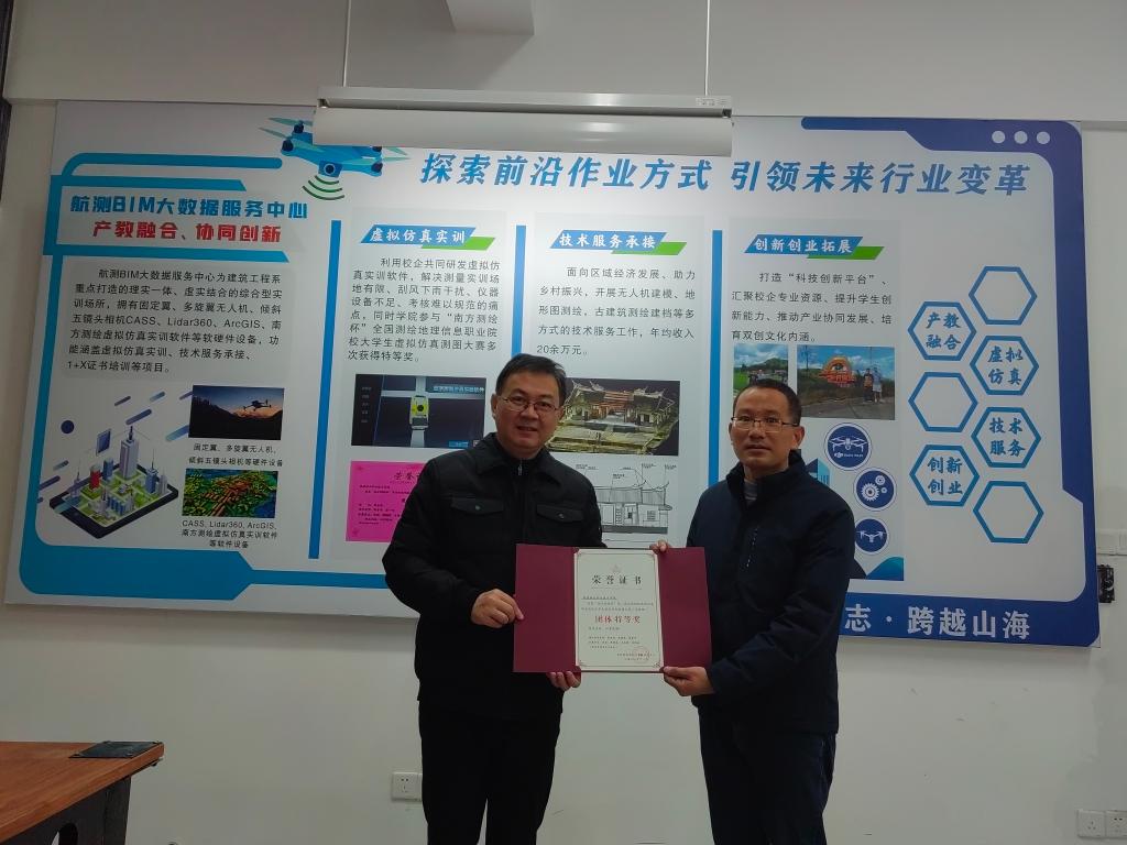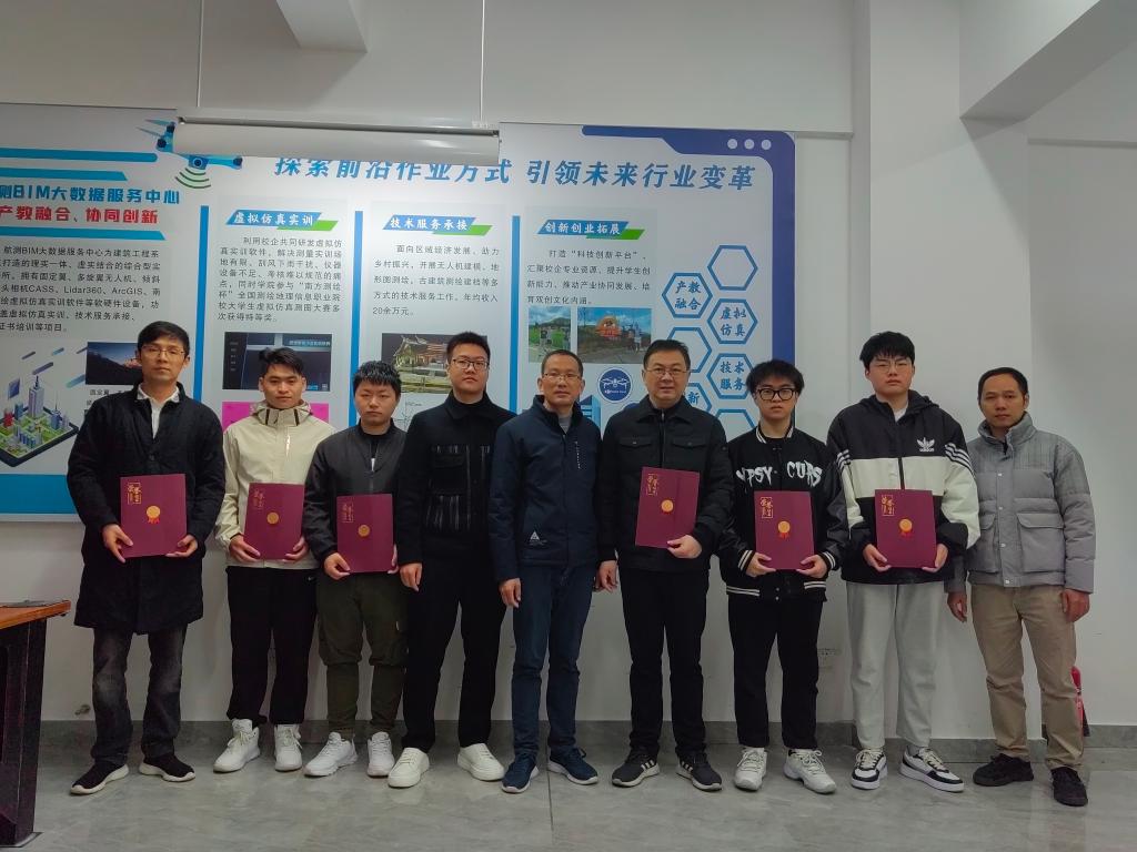 在2022年全国虚拟仿真测图大赛中,我系获得单项特等奖一项、单项一等奖一项,团体特等奖一项,交流会后,王晓、林雨聪对本次获奖选手进行了颁奖。