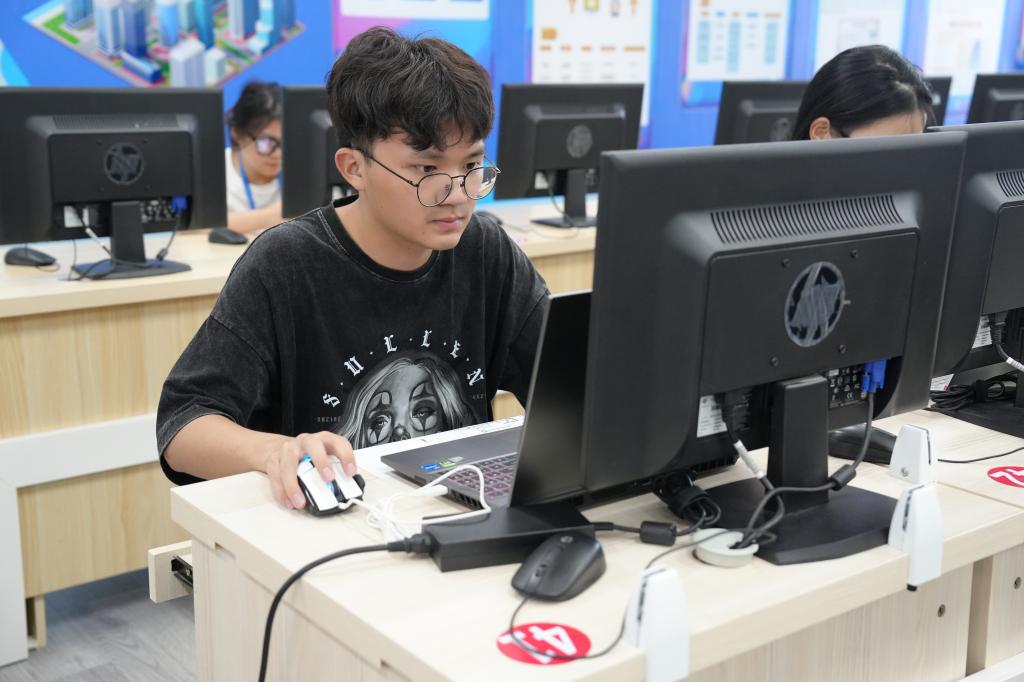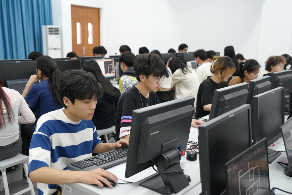 CAD制图技能竞赛更像是一场看不见硝烟的比拼,选手们专注于眼前的电脑屏幕,凝神思索,大家充分利用平时的所学技能,娴熟地画出规定图形,赛场内唯有滴滴答答的键盘敲击声与鼠标点击声此起彼伏。