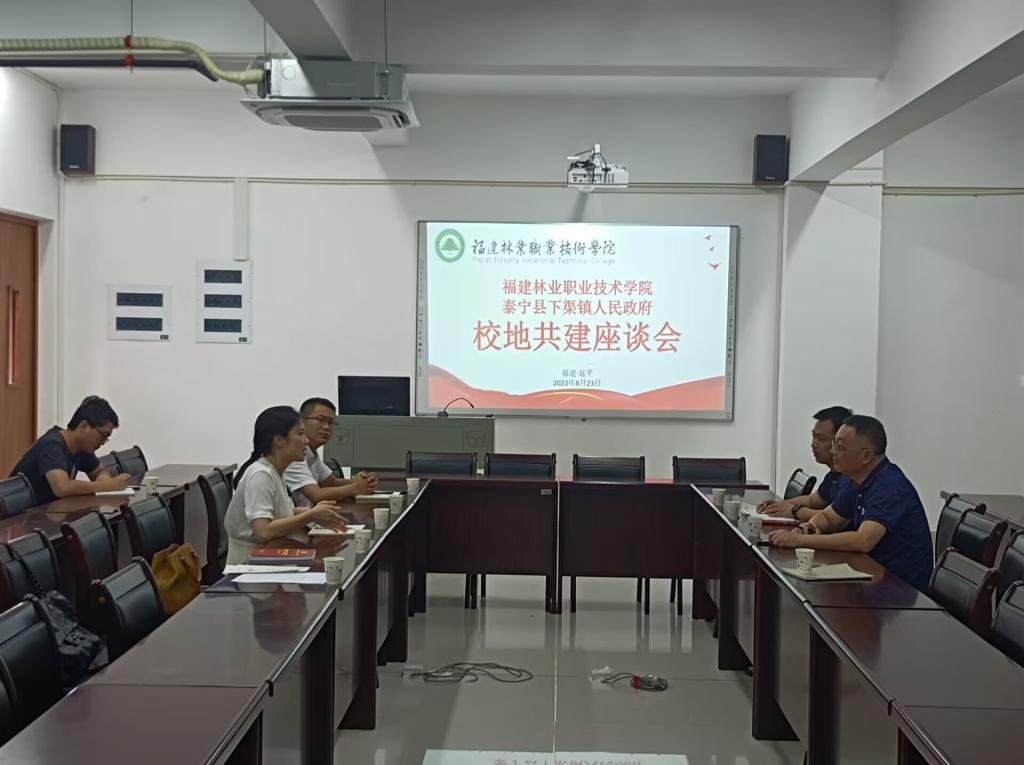 为深入学习贯彻党的二十大精神,落实习近平总书记关于“健全共建共治共享的社会治理制度,提升社会治理效能”的重要指示,2023年8月23日下午,泰宁县下渠镇人民政府镇党委副书记、镇长林友丽、镇人大主席鲍友强、党政办工作人员张璐一行三人莅临建筑工程系开展校地共建座谈会,到校对接产业生产发展合作及学习大学生社会实践工作开展情况。建筑工程系党总支书记魏长专、系主任彭忠伟、组织员叶新颖、教研室主任陈龙参会。
