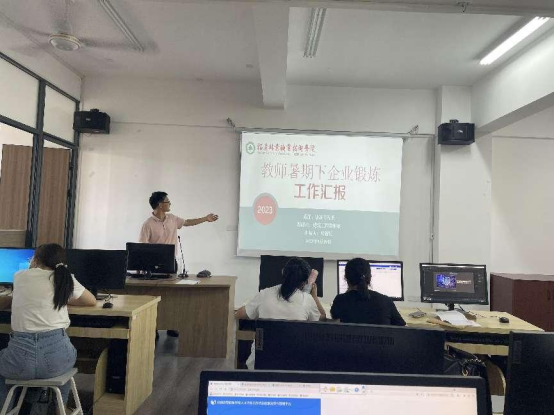 接着,参加2023年暑假期间企业实践的教师,逐一汇报了参加本次企业实践的体会、学到的知识与技能,分享了从企业所学转化到学校专业建设及课程建设的想法,探讨了日后教学的应用方向,参会教师认真倾听,交流经验。