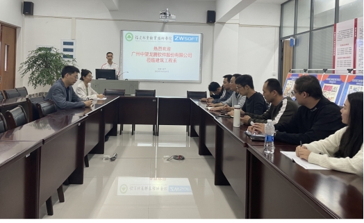 本网讯/10月27日,广州中望龙腾软件股份有限公司企业区域经理邱俊、教研中心经理杜明明到访我院建筑工程系开展交流研讨。建筑工程系主任彭忠伟、系书记魏长专、副主任张李平、教研室主任陈龙及相关专业老师共同出席交流研讨活动。