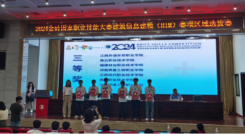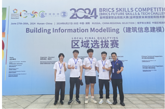 本网讯/2024年6月28日-29日,2024金砖国家职业技能大赛建筑信息建模(BIM)赛项区域选拔赛在湖南城建职业技术学院举行。本次区域选拔赛共有来自湖南、湖北、江西、福建、河南五省的51所院校,共计69支代表队138名选手参加比赛。系部派出建筑工程技术2201班邱炜、建筑工程技术2204班梁微楗同学获得团体二等奖,智能建造技术2301班艾宇晨、陈宇豪同学获得三等奖。建筑工程系王兴、廖坤阳两位老师参与本项赛事的指导工作。