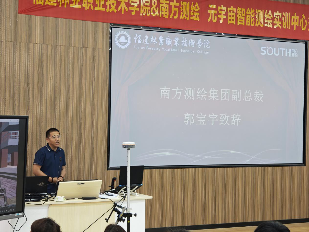 南方测绘集团副总裁郭宝宇在发言中指出,作为国内测绘领域领军企业,集团高度重视教育与产业的深度融合。他表示,元宇宙智能测绘实训中心将依托集团技术优势与学院教学资源,打造集教学、科研、实践于一体的创新平台,为智能建造行业智能化升级提供人才支撑,实现校企双方资源共享、优势互补。