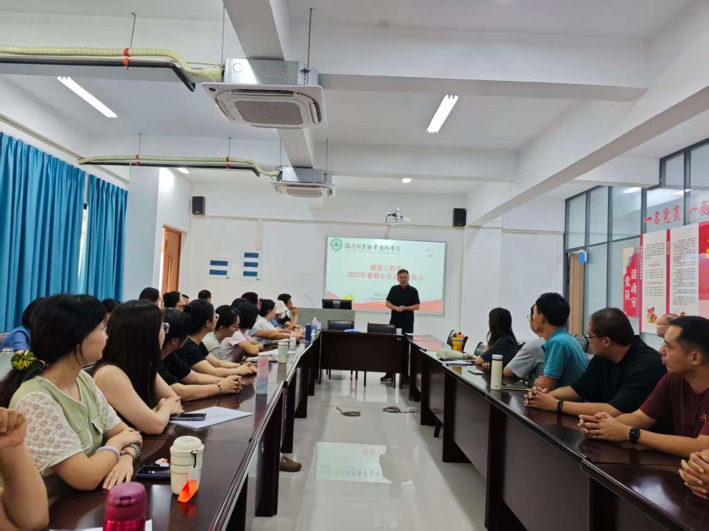 本网讯/为进一步推动产教融合、校企协同育人,切实提升教师队伍的实践教学能力与行业素养,9 月 16 日下午,建筑工程系在系会议室召开教师企业实践成果汇报会。由建筑工程系主任彭忠伟教授主持、系书记魏长专副教授以及全体专兼职教师参会,共同见证教师们在企业实践中的成长与收获。