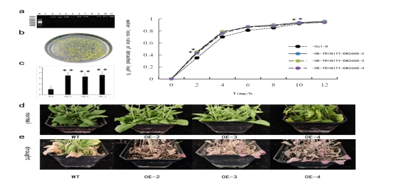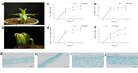 百合是世界重要的观赏花卉。也是重要的切花植物,干旱胁迫是影响百合叶片形态和生理的主要制约因素。严重影响百合切花品质和质量。因此,了解百合响应干旱的分子机制及对干旱胁迫的反应很重要。课题组采用了转录组和代谢组分析了东方百合受到干旱胁迫的响应及分子机制。联合分析产生的大多数转录因子和代谢产物显示出下调的表达模式。差异基因和代谢产物主要在与糖类(如半乳糖)相关的代谢途径中共富集,表明干旱胁迫降低了东方百合的糖代谢水平。进一步分析发现,9对差异表达的代谢产物和基因相互关联。有趣的是,一个名为TRINITY_DN2608的基因编码α-D-葡萄糖类型)现在下调。在拟南芥中的过表达TRINITY_DN2608基因,发现过表增加了其易感性,说明可能通过抑制糖代谢水平来应对干旱胁迫。