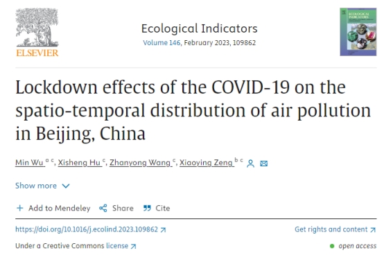 我院交通工程系吴旻老师以以第一作者,福建林业职业技术学院为第一单位在《Ecological Indicators》(JCR 1区, 中科院环境科学与生态学2区top期刊,IF=6.9)在线发表题为“Lockdown effects of the COVID-19 on the spatio-temporal distribution of air pollution in Beijing, China”的研究成果。